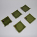 現代の食卓にも合うように考案されたタタラ整形における手作り感あふれる形に、難度の高い濃厚感ある緑みの青磁釉を施し、その上に花びら、太陽を連想させる辰砂釉が施されたモダンな作品でございます。